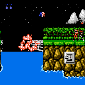The gist of the game was a simple one.  An alien race had landed on Earth and two special forces type men went to snuff them out.  Along the eight levels of play, you could pick up several types of special guns to assist in the battle.  A lot of obstacles stood in your way like exploding bridges, rotating guns, alien creatures, and other assorted challenging terrain to overcome.