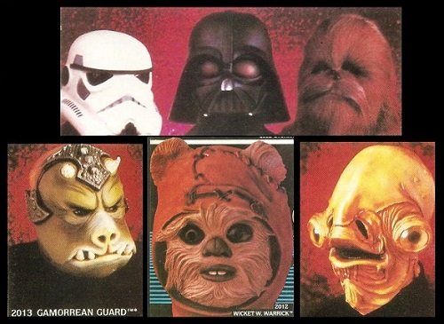 Second stringers like the Gamorrean Guard and Admiral Ackbar get their moment in the spotlight with pretty epic recreations of the movie masks. Just douse them with clear goo and they would come to life all over again. The Wicket W. Warrick mask may lack the life-like fur, but they did a great job with the stitching on his hood. Also, the Max Headroom style background graphics make it seem like this could just be a computer simulation of the Ewok warrior. But the crowning achievement of this ad is by far our final entry.