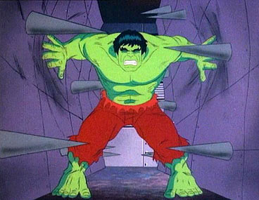 I always smile when I hear the dun dun, dun dun, dommmmm, dommm dommm dun dun, dommm dommm da dun da dun, dunna da dommm... beats of the intro to this show with HULK rampaging and stomping along, then showing Bruce Banner trapped in a terrifying spiked wall hydraulic press about to be crushed while Betty helplessly watches.