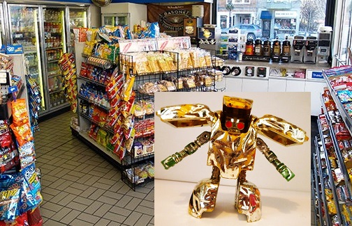 After ingesting large amounts of Minute Maid boxed orange juice (Mom rarely went for Hi-C), I had to make a stop at one of the aforementioned mini-marts to use the facilities. Not trusting my precious robot treasure to be viewed by the thieving eyes of other travelers, I brought Nuggit along. What happened next was a blur. Perhaps I was distracted by the smell of heat lamp corn dogs or the opportunity to choose my own beverage from the refrigerator case, but whatever the reason, Nuggit got left behind.