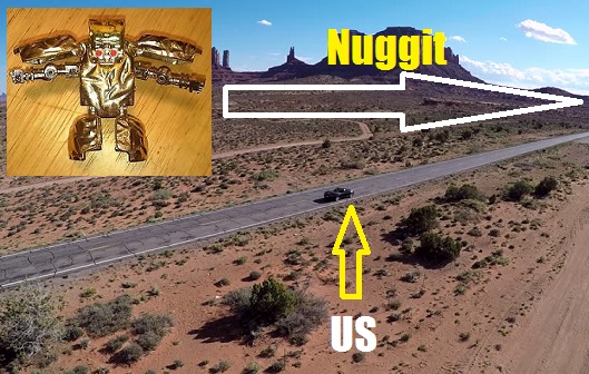 I’m sure you had a favorite toy of the moment as a kid, mine was Nuggit from the short-lived Rock Lords action figure series. Officially a spin-off of Go-Bots these transforming rock-bots were pretty awesome. In 1987, Nuggit gleamed above the rest with his shiny gold exterior and Johnny 5 from short circuit good looks. He traveled with me everywhere, from the grocery store to the playground, Nuggit was at my side, so of course he came on the family road trip.