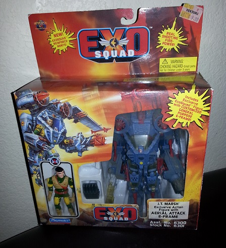 I only caught a handful of episodes on TV, but my buddy Andy had a couple of the toys from Playmates, including  J.T. Marsh aka The Leader Guy. The intricacy of guiding the figure into the suit and loading the missiles for battle always fascinated me. At the time Exo Squad didn't really fit in with the rest of my super hero toy collection, so I never bought one for myself, but now here we are.