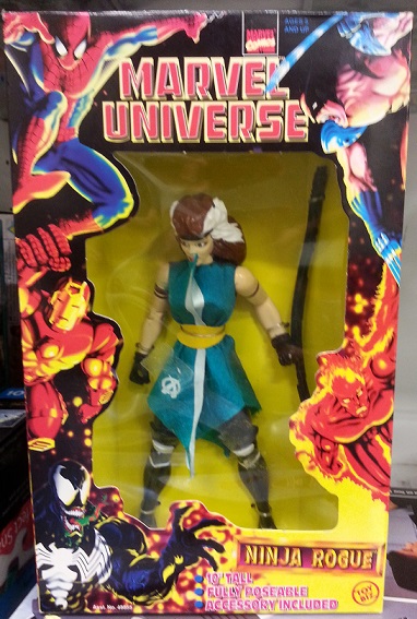 There were no comic book characters more recognized in the 90's than the X-Men and as a result there was a never ending stream of action figures by Toy Biz. But by the end of the decade they had run out of justifiable story based variant toy ideas and just started mashing up the X-Men with Monsters, Robots and yes, Ninjas. This figure is a perfect example of their desperation. I give you, Ninja Rogue.
