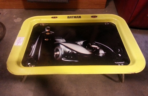 As a bonus, allow me to include this Batman 1989 TV tray, a relic of days gone by when eating in front of the TV was a celebrated event. Saturday mornings would have been something special indeed watching an episode of Batman The Animated Series while munching on a bowl Ralston brand Bat-Cereal being held aloft by this beauty. (NLogan, can you spare a cup of Bat--Chow?)