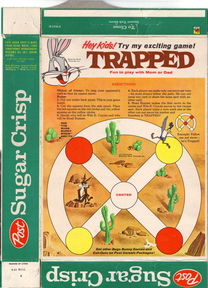 Sugar Crisp cereal box - Bugs Bunny Trapped Game - front - 1961_resize