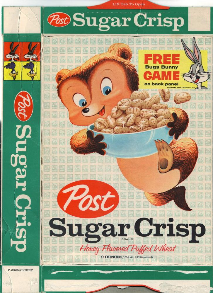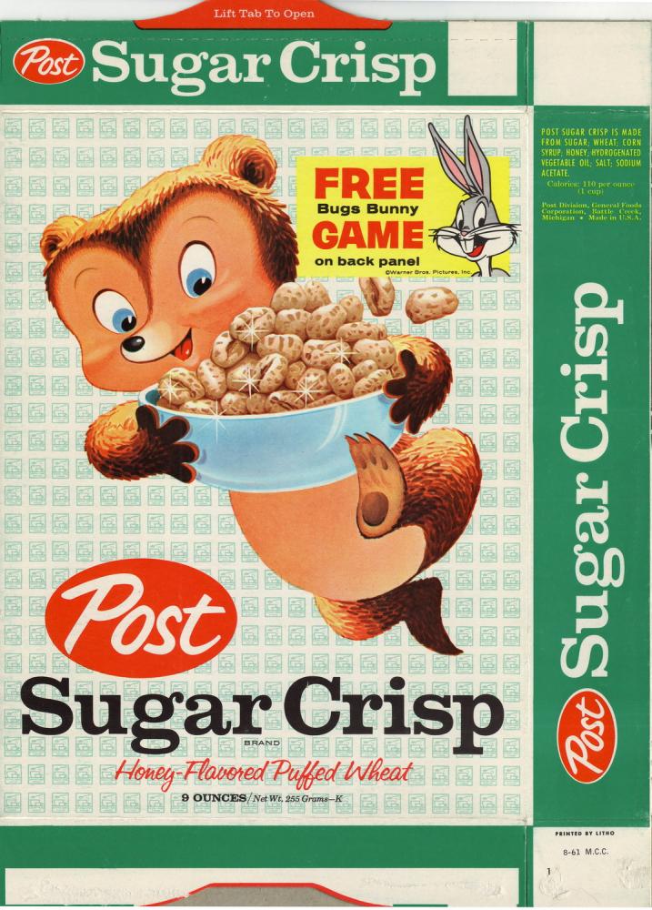 Sugar Crisp cereal box flat - Bugs Bunny Headstart Game - front - 1961_resize