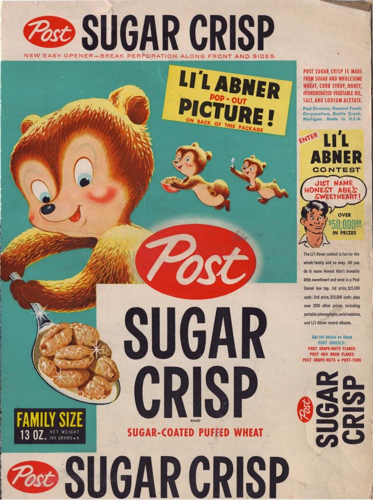 Sugar Crisp cereal box flat - Lil Abner Pop Out Picture - front - 1957_resize