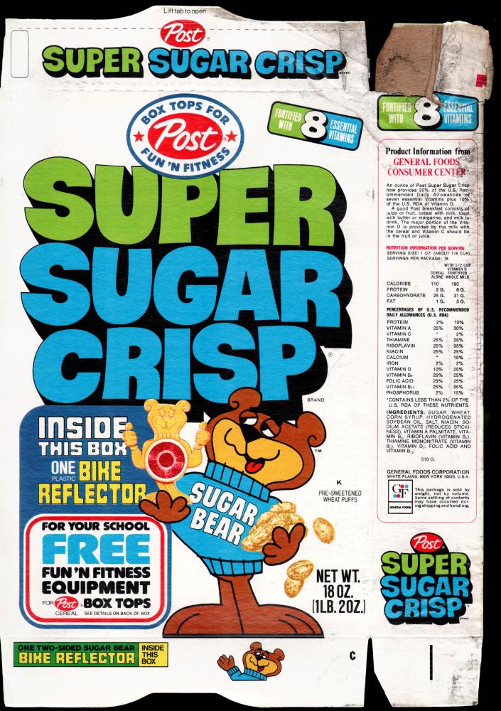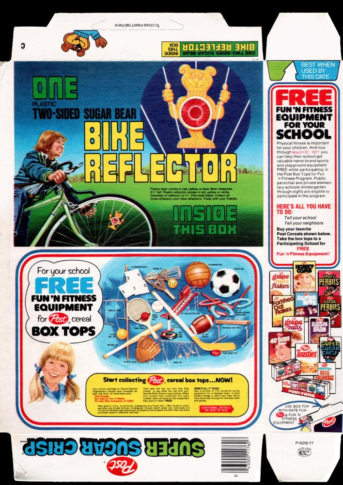 Super Sugar Crisp - Bike Reflector - Box Tops Fun N Fitness - 1976 or 1977
