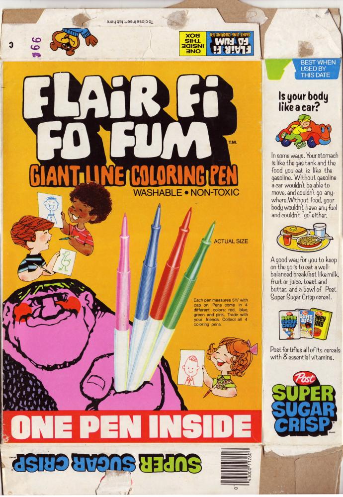 Super Sugar Crisp cereal - Flair Fi Fo Fum - Box Front - 1975_resize