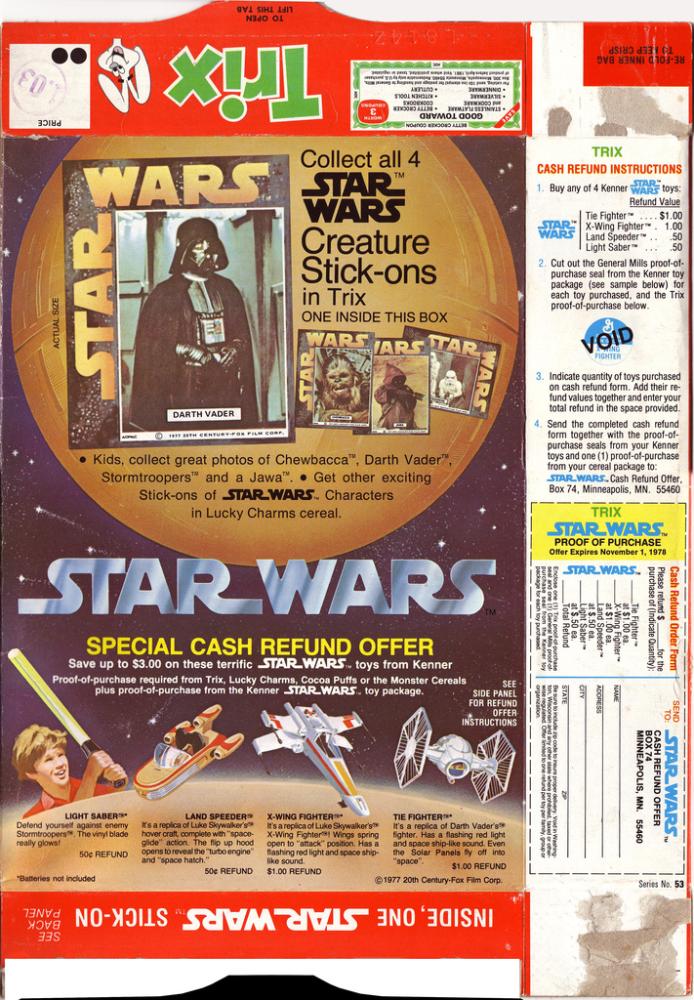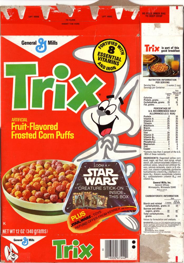 Trix cereal - Star Wars creature stick-ons - box - 1978