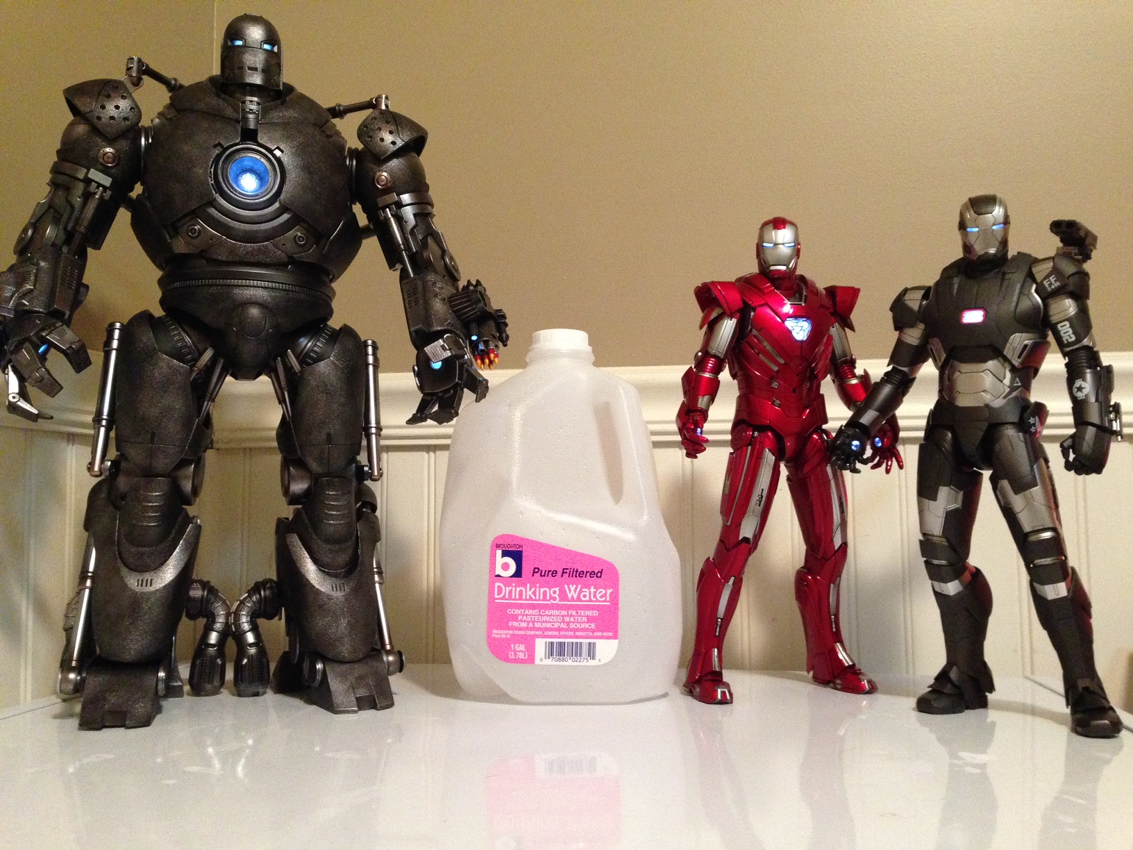 Here is the heavy metal gang, posed with an empty gallon drinking water container for size reference...