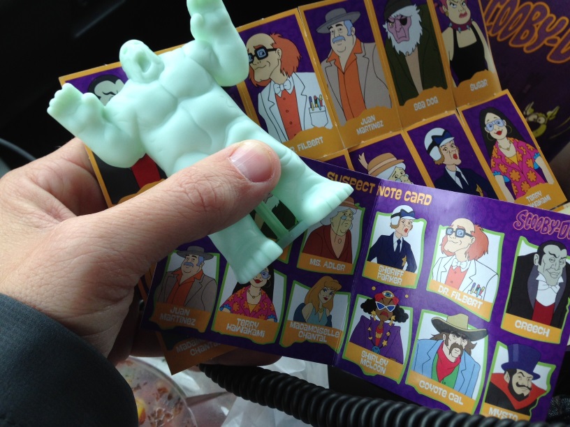 Each meal comes with a toy/game. Meaning, you use whatever item you get (which could be a Mystery Machine, Monster, Scooby, or other item as part of a mini game that also comes with the item. Pretty cool. You love this signature.