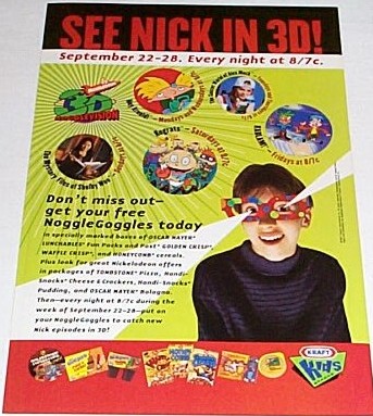 i'm not sure if this counts as a retro product, but back in 1998 certain nick shows would air on a one hour block called the nickelozone, and in certain cereals and products you would get these 3D glasses packaged with them to watch exclusive 3D made episodes of popular nick shows. not just the product in general, but i'd like to see the concept come back too. maybe nicksplat will bring it back someday? ![]() Nintendo Network ID: Benjamillion