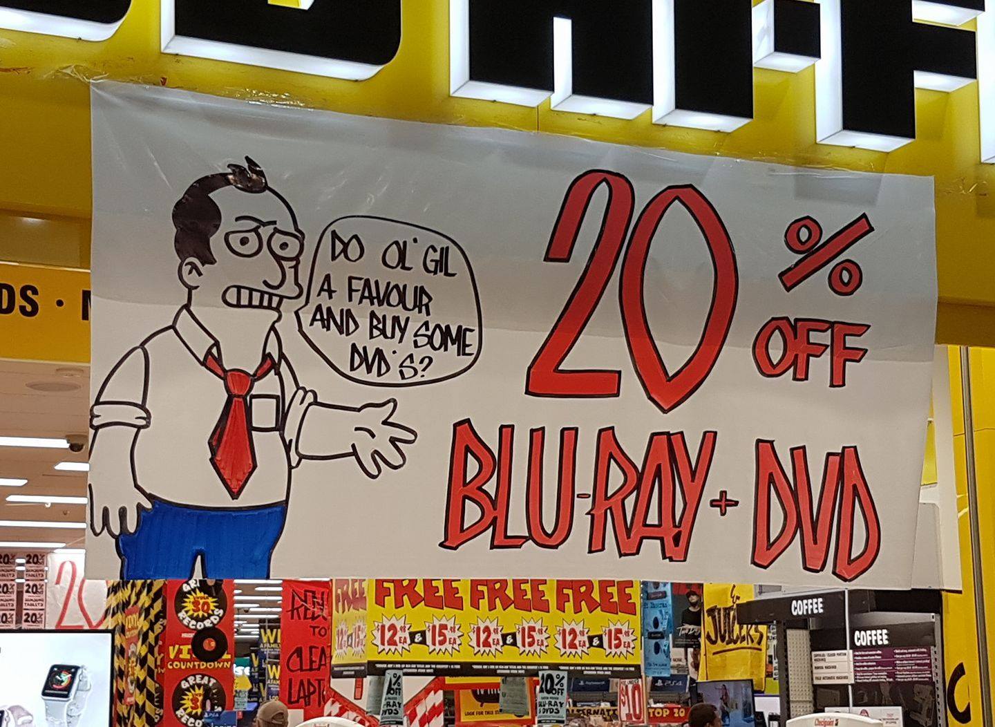 simpsons signs at a jb hi-fi store