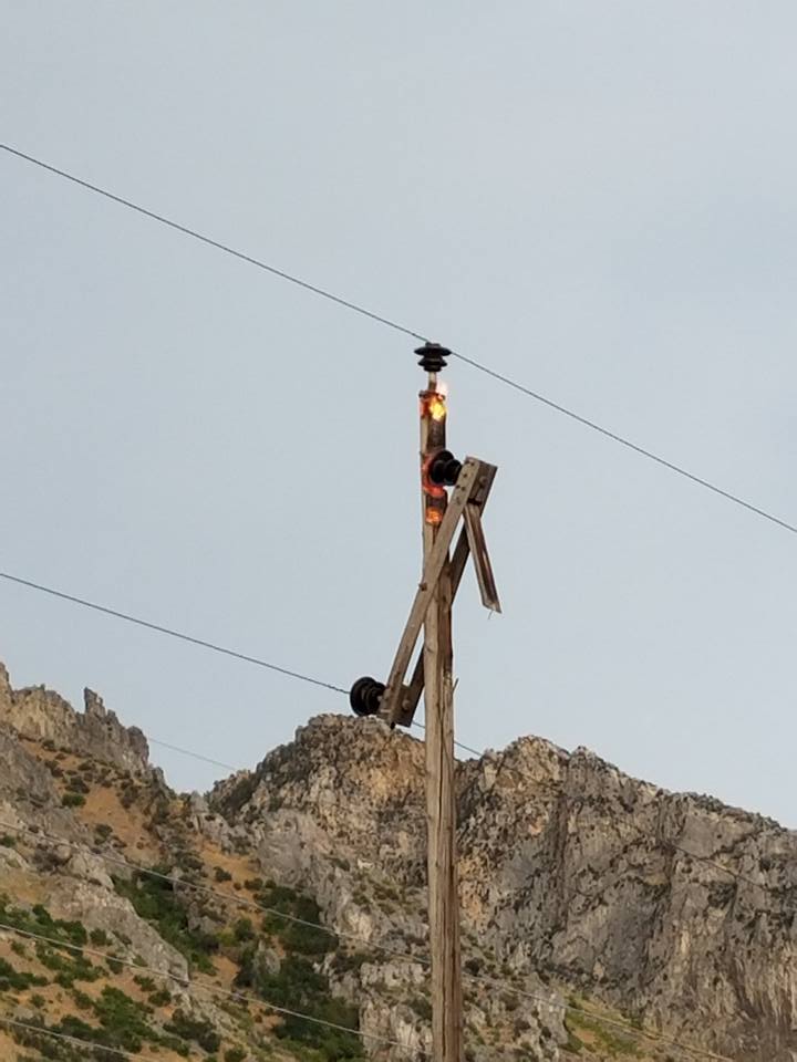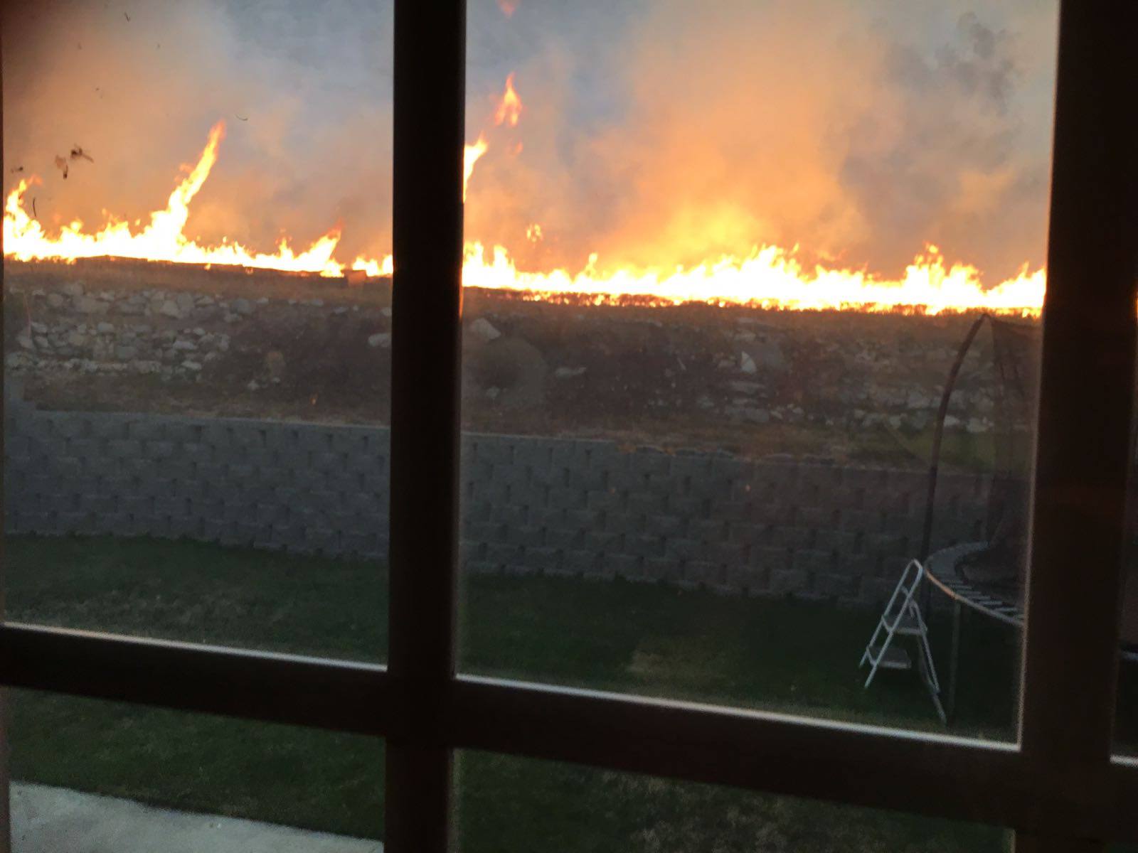 Fire burned up the mountainside behind my house and came within 100 feet of my porch. Some of my neighbors it came to the grass line. Multiple agencies responded. Our neighborhood was evacuated. The fire is out now they have large trucks spraying everything and rows of firefighters with shovels putting out hotspots to prevent it from flaring up again. Lightning struck a power pole and exploded a transformer causing two live wires to fall and ignite the grass on the mountainside. An estimated 30 acres burned.