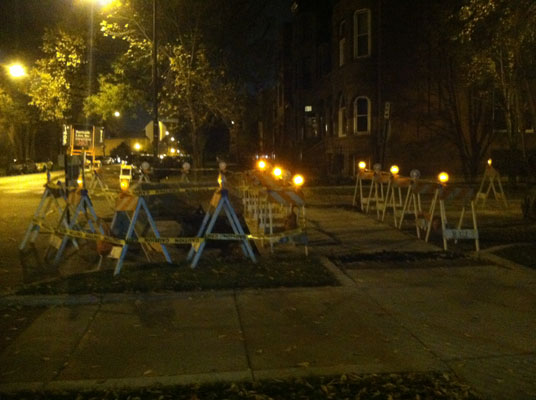 A flock of barricade lights was recently spotted near my house!