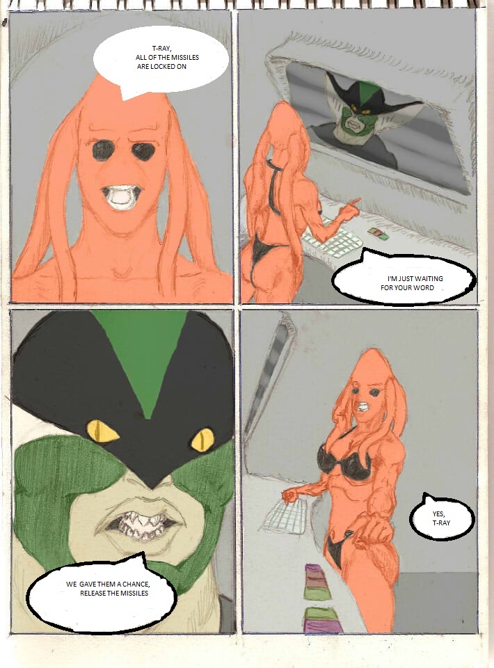 to let you know, my writer and i have decided to shelf the books, after issue 3. anyway, ill re-post the pages, with dialogue this time.