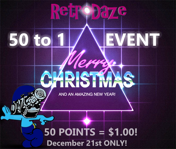This Christmas Santa and Photog Smurf worked out a nice deal where Santa doesn't have to deliver you any presents, but he's working some Christmas magic to make your points double in value! Cash in your points on December 21st and the ratio will be 50 to 1 (usually 100 to 1). That's 50 points to $1.00!