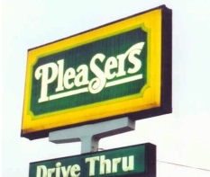 Now, when Burger Chef went out of business, the restaurant here was not converted to a Hardee's (as most were). Instead, it took on the name Pleasers (which several other Burger Chefs did as well).